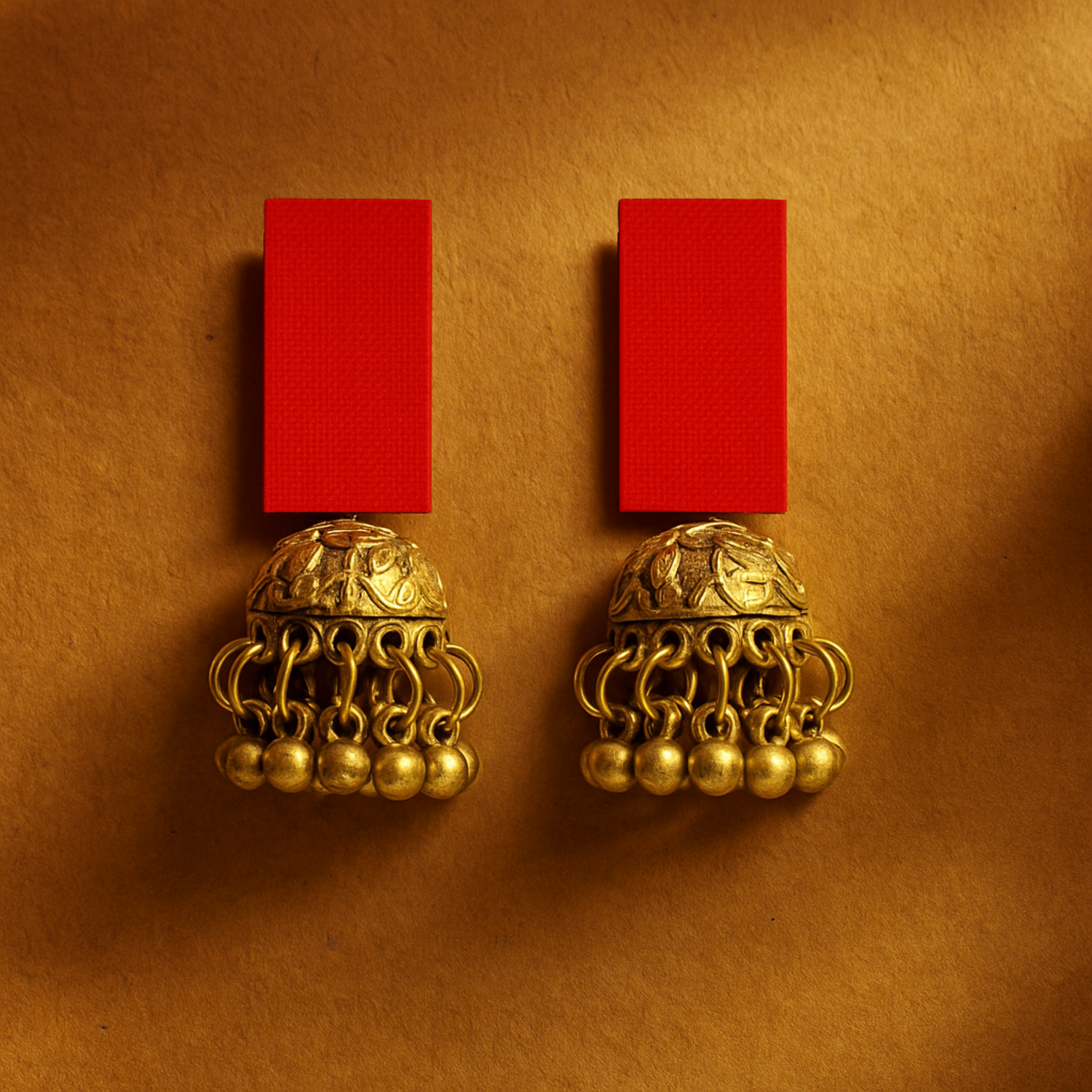 Handmade Unique Multi Colour Tie Dye Print With Golden Jhumki Fabric Earrings For Women