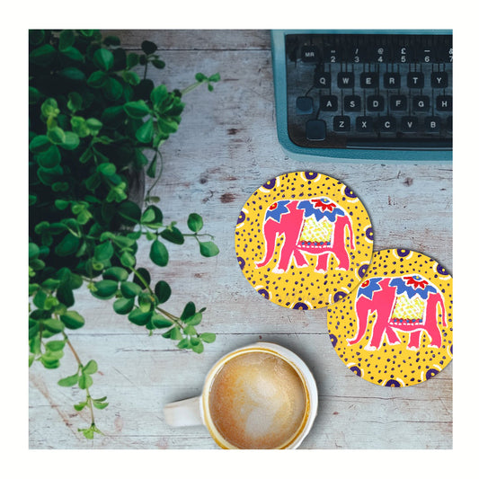 Original Wooden Round Coffee/ Tea Coasters Set- Handcrafted & Hand-Painted Elephant Coaster with Easel for Kitchen/Table & Home Decor/Gifts/Restaurants/Living Room/Coffee Table (Set of 2)