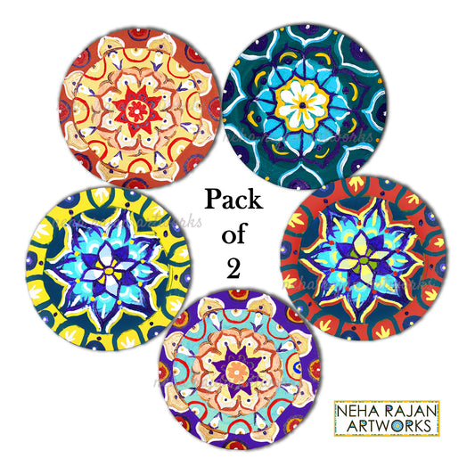 Original Wooden Round Coffee/ Tea Coasters Set- Handcrafted & Hand-Painted Floral Mandala Coaster with Easel for Kitchen/Table & Home Decor/Gifts/Restaurants/Living Room/Coffee Table (Set of 2)