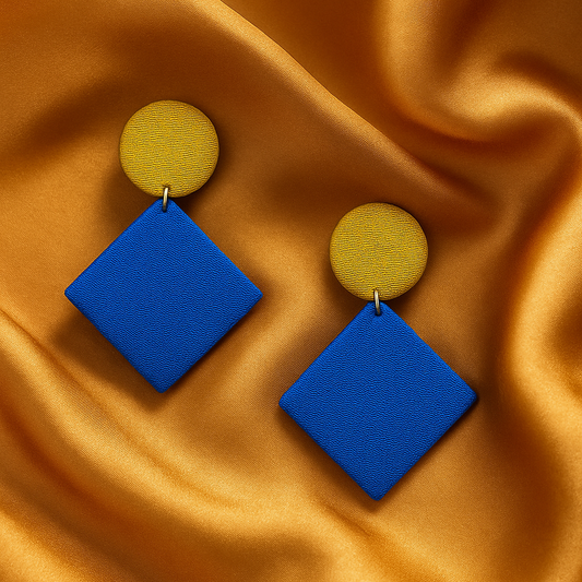 Handmade Blue Minimalistic Geometrical Shape Antique Dangler Fabric Earrings For Women