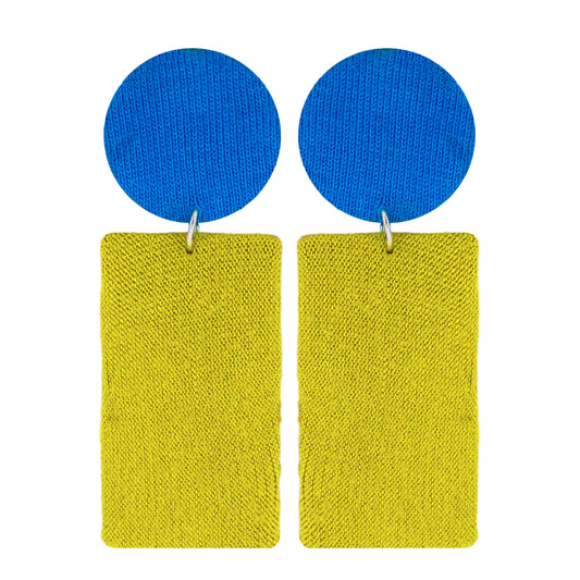 Handmade Blue Olive Minimalistic Geometrical Shape Antique Dangler Fabric Earrings For Women