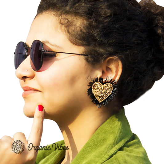 Handmade Heart Shape Beaded Big Stud Fabric Earrings For Women