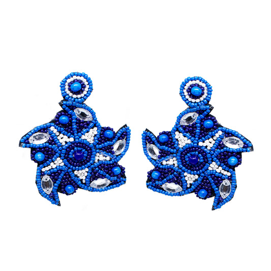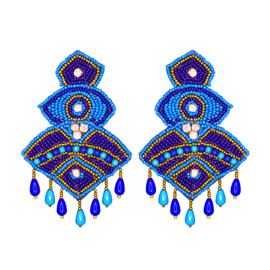 Blue Hand Embroidered Beaded Upcycled Fabric Earrings For Girls