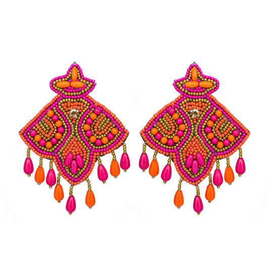 Pink Orange Hand-Embroidered Upcycled Beaded Fabric Earrings For Girls