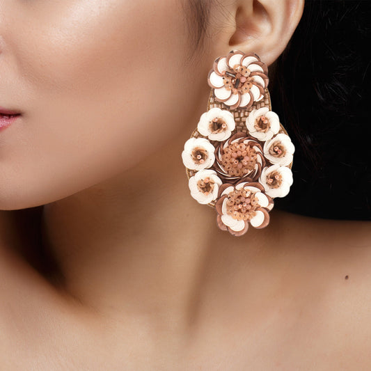 Handmade Pink Floral Design Sequence Work Dangler Embroidered Earrings For Women