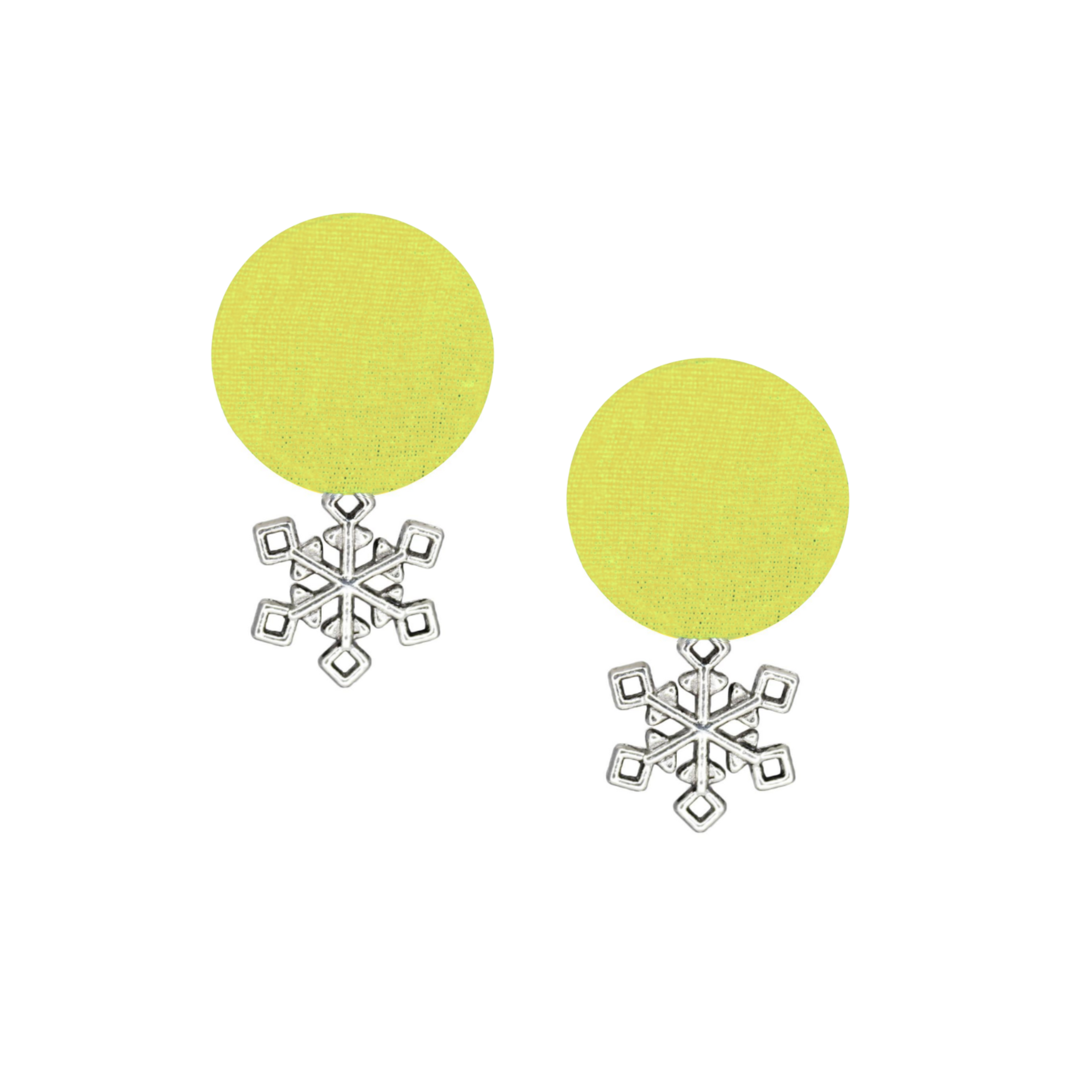 Add a touch of charm and sustainability to your style with these eco-friendly stud earrings, handcrafted from upcycled warm green fabric. The round stud design is elevated with a delicate silver snowflake charm, blending elegance with playful sophistication.