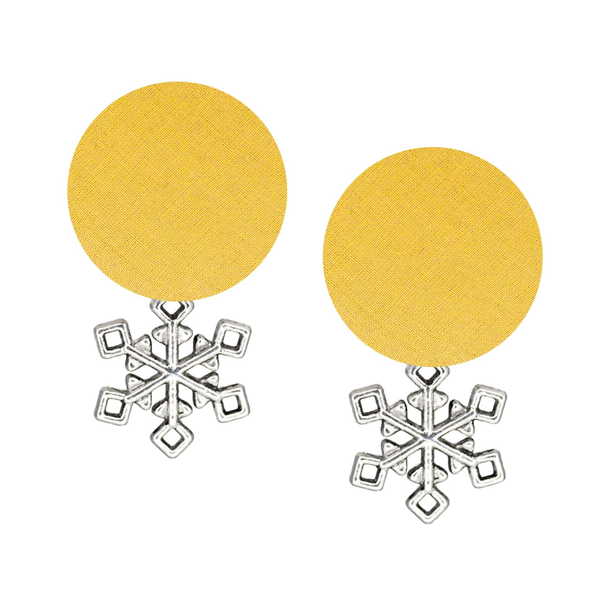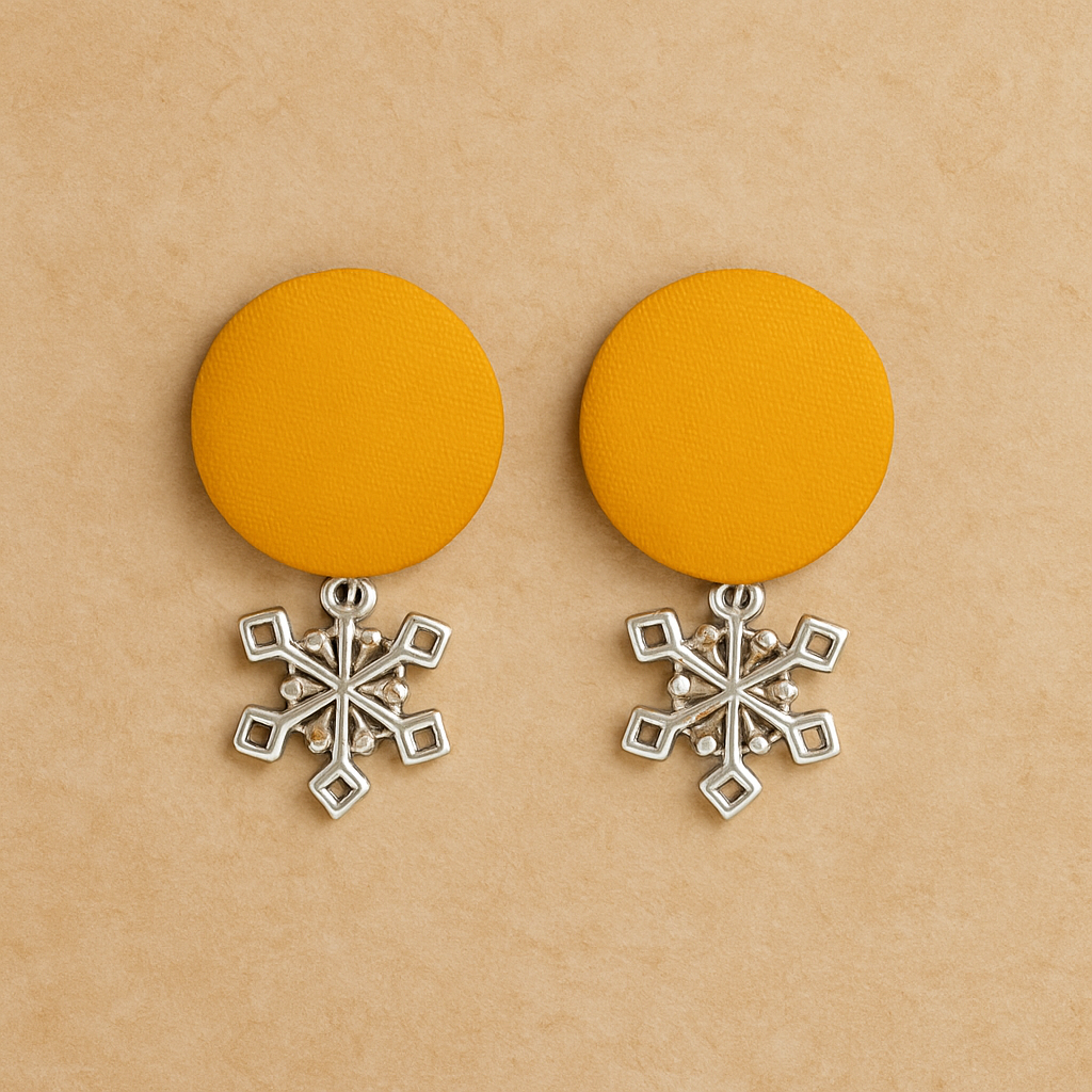 Add a touch of charm and sustainability to your style with these eco-friendly stud earrings, handcrafted from upcycled yellow fabric. The round stud design is elevated with a delicate silver snowflake charm, blending elegance with playful sophistication.