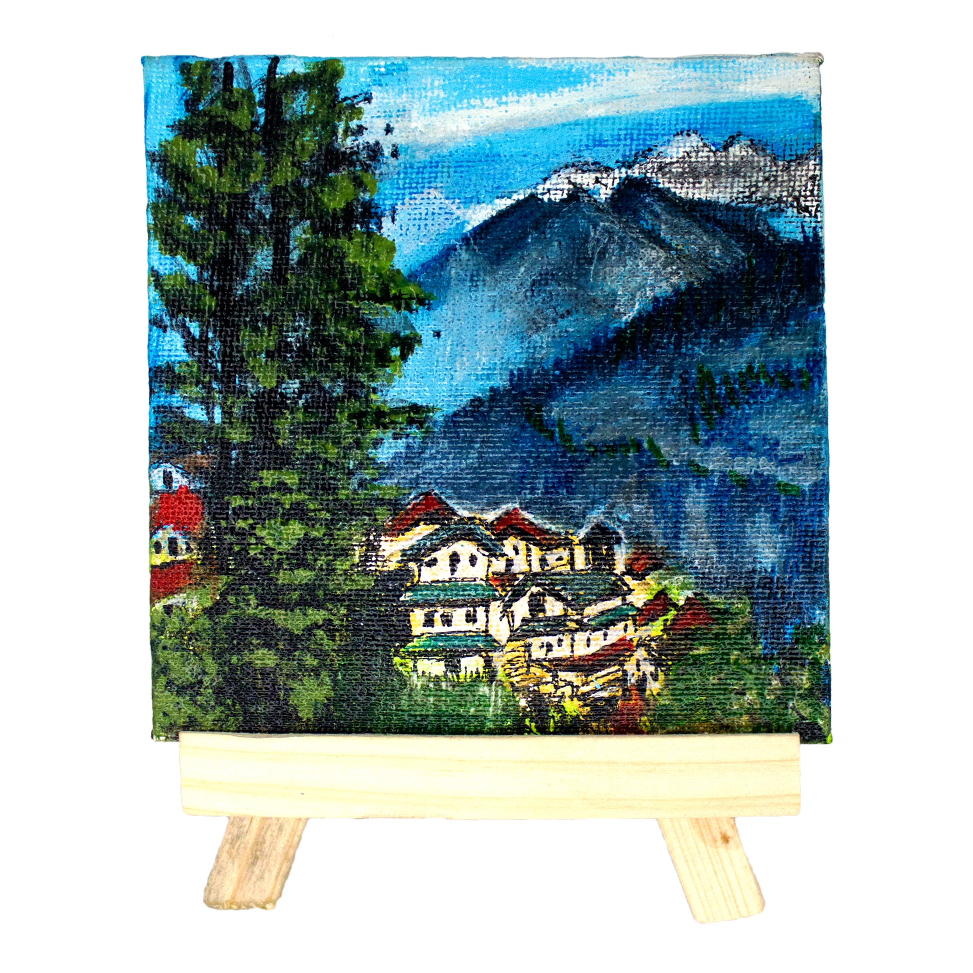 Original Handmade Scenery Mountain Painting Hand Painted On Canvas Frame 4*4 With Easel
