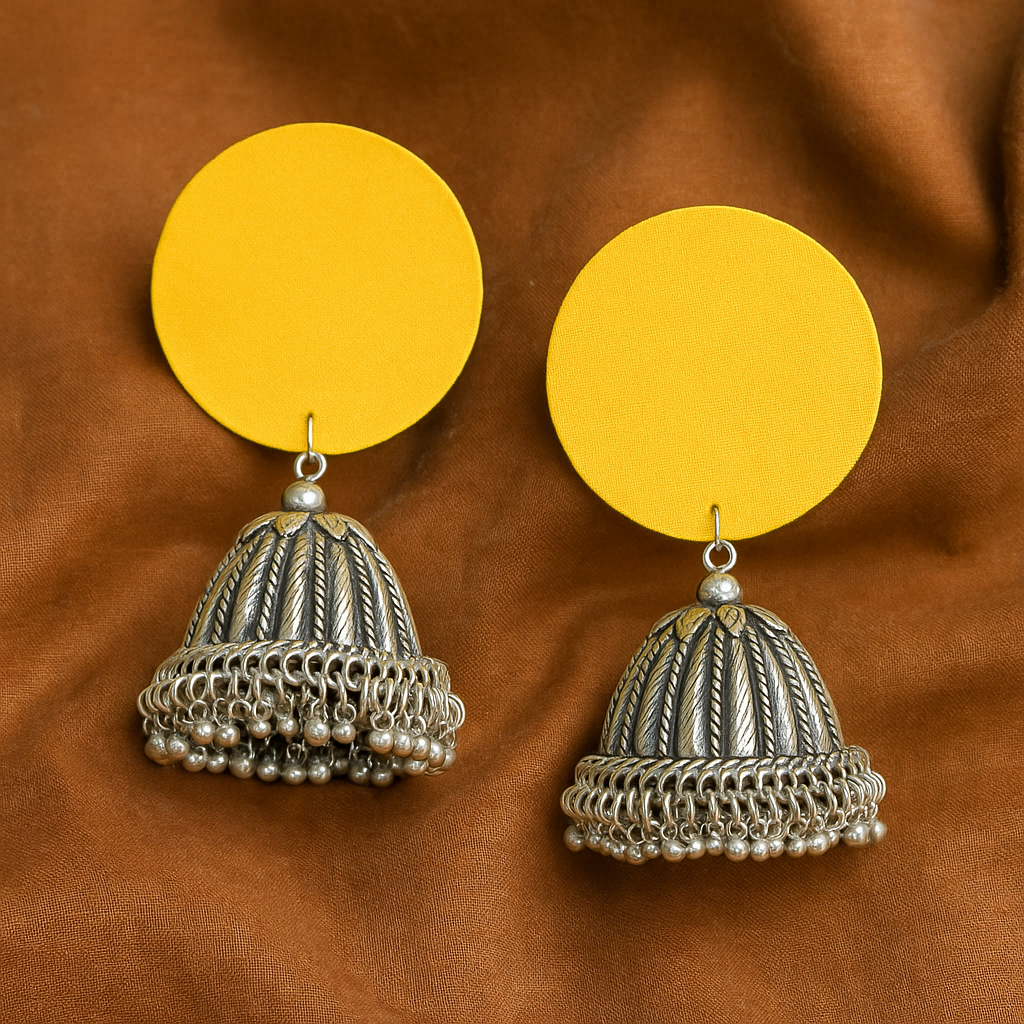 Sustainable Handcrafted Earrings with Upcycled Fabric & Silver Jhumka